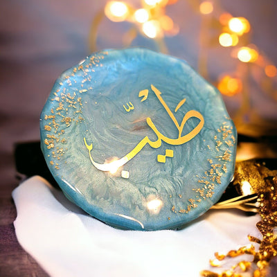 Heart-Shaped Resin Keychain – Arabic “Love” Calligraphy with Gold Leaf